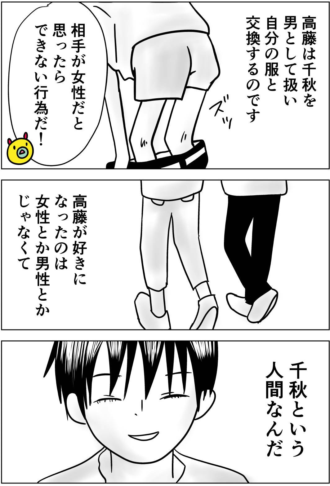 遠田おと先生の『にくをはぐ』は、心と身体の性の不一致に悩む千秋と、千秋の幸せを心から願う父、そして千秋を愛する高藤の三人を描いたヒューマンドラマです。深い愛をもった三人の愛情のすれ違いから結びつきまでが、登場人物の葛藤と行動から見事に表現された名作です。