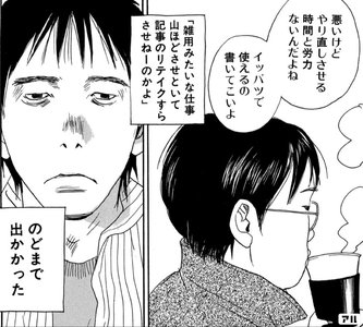 ただ、彼は葛藤していました。いつまで経っても署名記事(自分の名前が掲載された記事)ひとつ書かせて貰えない。上司には「もっと使えるの書いてこいよ」と言われる始末。