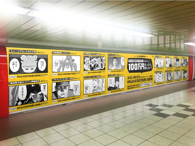 開催期間中、歴代のやんちゃなヤンマガヒーローたち100万円のそれぞれの使い方を渋谷駅大型ボードをはじめ、山手線、新宿駅、池袋駅をジャックして公開します。