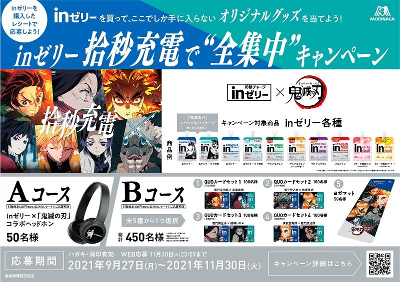 スポーツや勉強、仕事といった様々な場面で「inゼリー」を摂り栄養とやる気をチャージし、“全集中”して炭治郎達の様に目の前の課題に立ち向かいながらキャンペーン応募にも挑戦してオリジナルグッズを当てましょう!