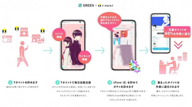 Tポイント事業を運営するカルチュア・コンビニエンス・クラブ(CCC)のグループの株式会社ワンモアと、多くの作家が所属するクリエイター・エージェンシーの株式会社コルクが共同で実施する、コルクに所属する若手漫画家をTポイントを使って応援するプロジェクト「GREEN × Tポイント」が発表されました。