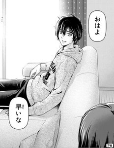 自宅のソファーでくつろぐイケメン。朝から「早いな」なんて褒められたら1日のエネルギーを一瞬で充電できてしまいます。