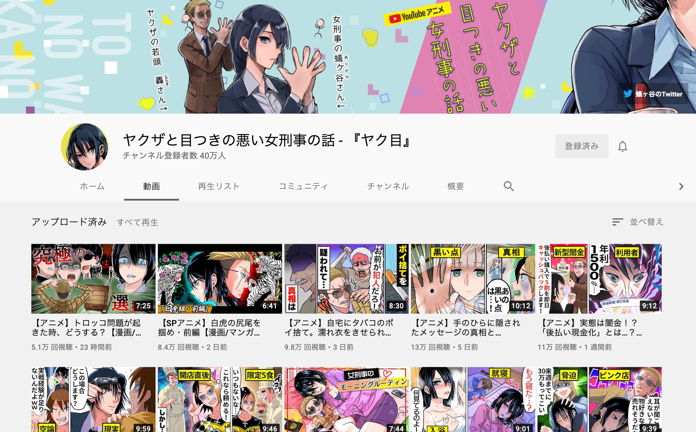 弊社が運営している『ヤクザと目つきの悪い女刑事の話 (通称:ヤク目)』というYouTubeアニメチャンネルがあるのですが、もともと大手出版社に持ち込みをしていたものの連載まであと一歩届かなかったという過去があり、即売会やSNSで知って僕らがお声がけしたんですよ。