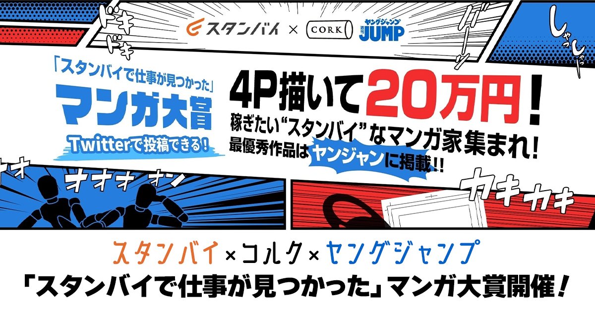 『「スタンバイで仕事が見つかった」マンガ大賞』は、求人検索エンジン「スタンバイ」を運営するスタンバイと、漫画家エージェンシーのコルク、さらには集英社の「週刊ヤングジャンプ」がタッグを組んで実施されるTwitterマンガコンテストです。