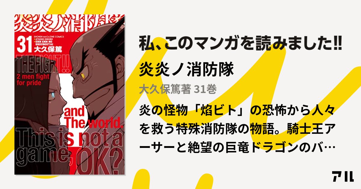 ドクリョー記事初登場!カリス魔王TKさんが読んだのは、2021年10月15日に発売された大久保篤先生の『炎炎ノ消防隊』第31巻。