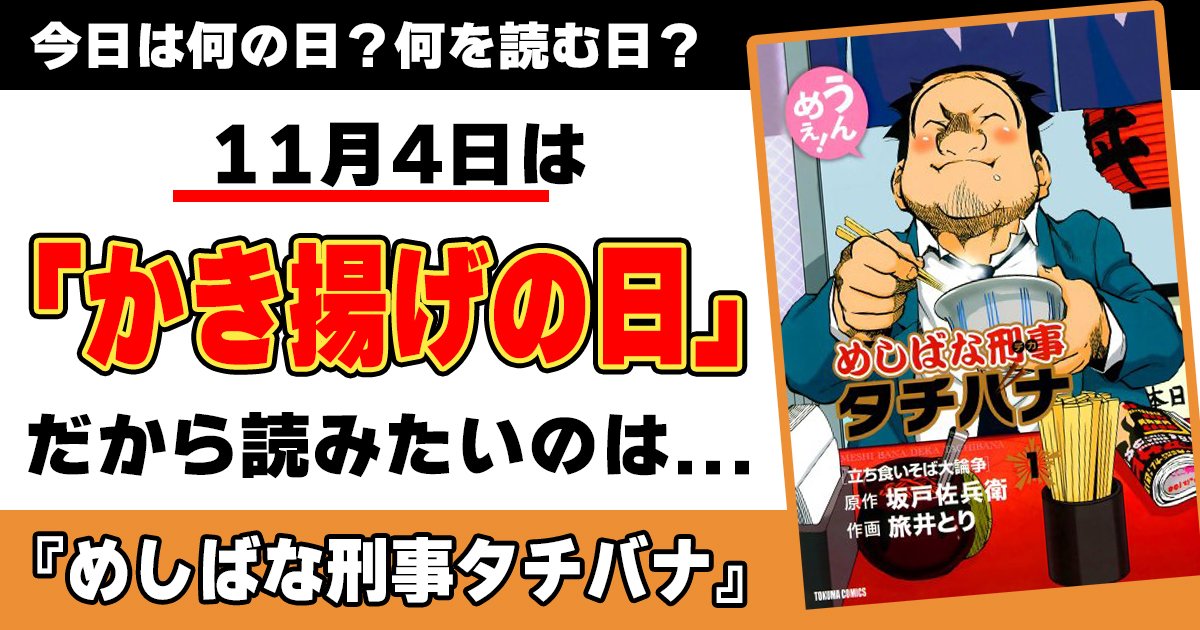 株式会社「味のちぬや」が、かき揚げを多くの人に食べてもらう目的で制定。かき揚げは「うどん」や「そば」などの麺類に乗せて食べられることが多いことから、「めんの日」である11月11日のカレンダー上で真上の位置にあたる日を「かき揚げの日」とした。そんな「かき揚げの日」に読みたいのは...