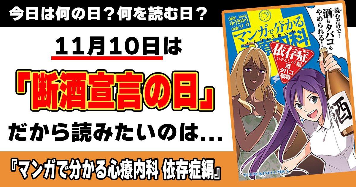 今日は「断酒宣言の日」。1963年11月10日に開催された、公益社団法人全日本断酒連盟の結成記念大会に合わせて制定。「もう、飲ベンバー(ノヴェンバー=11月)、酒、止まる(10日)」の語呂合わせが由来。そんな「断酒宣言の日」に読みたいのは...