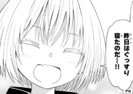 休みの日などはたくさん寝ますよね。そんな朝にピッタリのコマ。この笑顔を見たら例え寝坊していたとしても許してしまいそうです。
