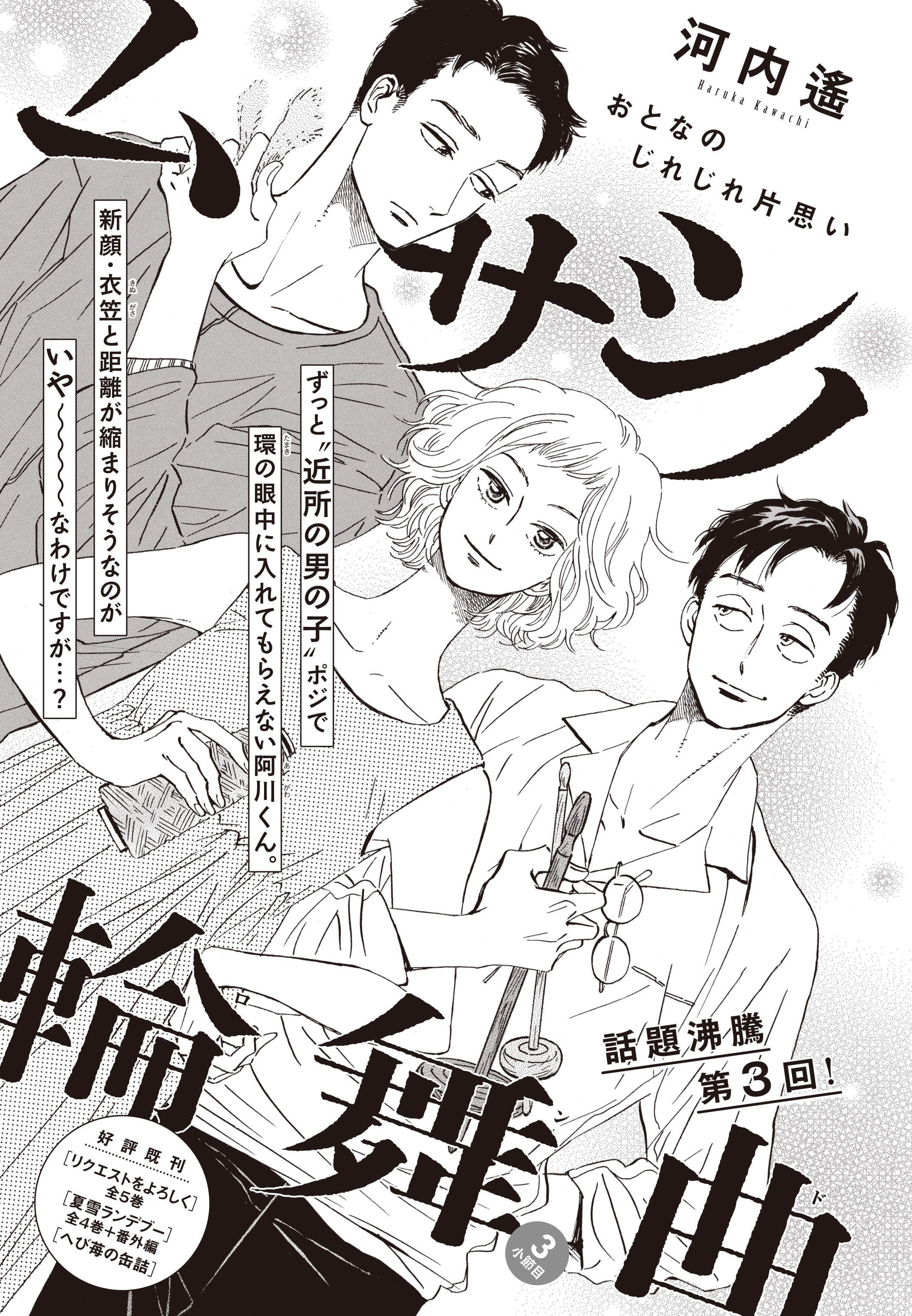 あと河内遙さんのまぶた線もすごい。じっとりと色気を醸し出すときと、ちょっとトボけたチャームをチラつかせるときがあるんですけど、アップのときも引きのときもバランスがきれいで、どのコマも佇まいが良いんですよね。