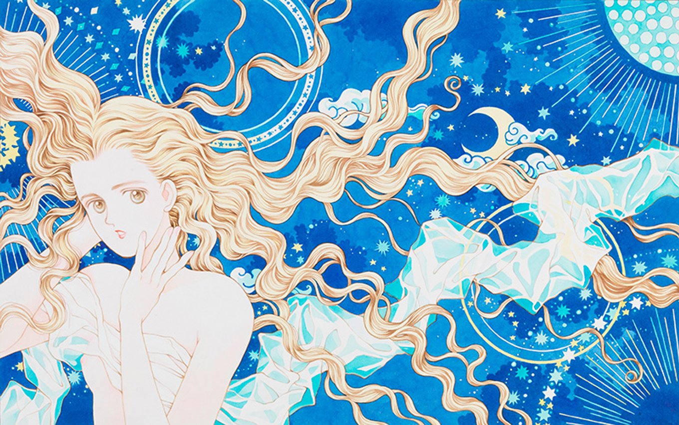 松苗あけみ《星座の少女》(『月刊ぶ~け』1989年9月号表紙用イラスト) 1989年 カラーインク・紙 ©Akemi Matsunae