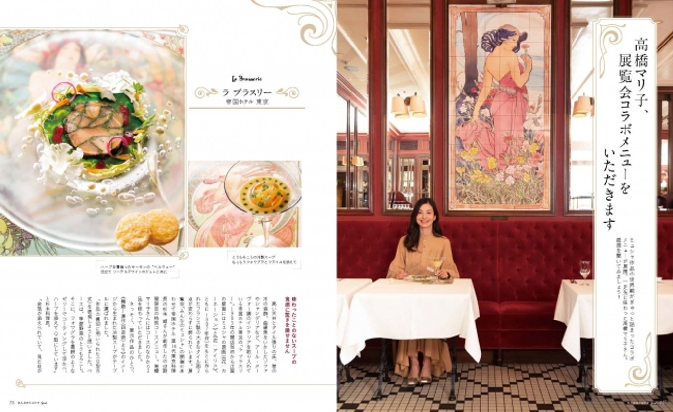 女優でモデルの高橋マリ子さんによる「みんなのミュシャ」展でのコラボメニューの紹介も掲載しているようです。