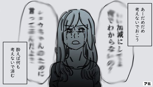 もともと内向的だった夫・ショウのお酒の量と回数が徐々に増えたことが気になる妻のユリ。慣れない仕事でストレスがたまってるんだろうなぁ、と最初は優しく見守っていましたが、休みの日にずっとお酒を飲みながらボーっとしているショウの姿に不安を感じ始めます。