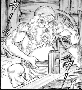 鍛冶職人で戦災孤児のエリカを養父。ガッツの大剣「ドラゴンころし」は彼の作品。魔物が寄り付かないというかつて妖精が住んでいたという鉱山で暮らしており、キャスカをかくまってくれる。