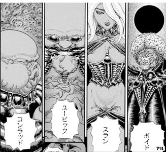 フェムト以外のゴッドハンド。真紅のベヘリット「覇王の卵」によって大切なものを生贄として捧げることで人間から転生した者たち。