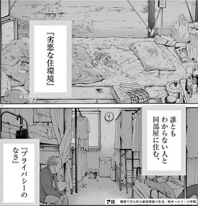 住まいを失ってしまった人たちにすり寄る「貧困ビジネス」の影。劣悪な住居を提供されるかわりに取り上げられる生活保護費。「健康で文化的な最低限度の生活」を送るためには克服しなければいけない「住まいの貧困」が描かれます。