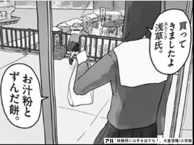 そして大童先生の祖先が仙台の人であり、実家で仙台の名物・ずんだ餅を食べていたこともあって、『映像研には⼿を出すな!』第1話冒頭に浅草がずんだ餅を食べるシーンが描かれたそうです。
