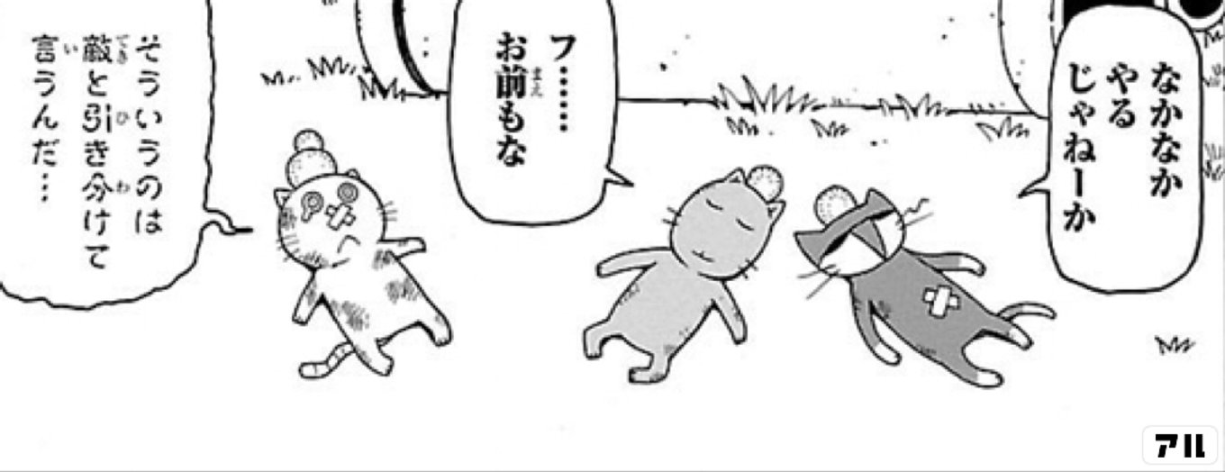 セリフ: なかなかやるじゃねーか フ…お前もな そういうのは 敵と引き分けて 言うんだ