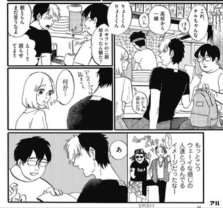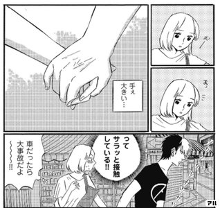 自転車修理代の代わりに、パン子が晩ごはんをおごることになりました。一緒にお店に行くときには、無意識なのにさらっと手をつなげてしまう、高橋くんだからできる強引さです。