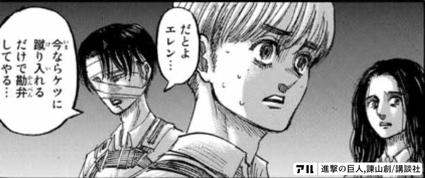 セリフ: だとよエレン…今ならケツに蹴り入れるだけで勘弁してやる…